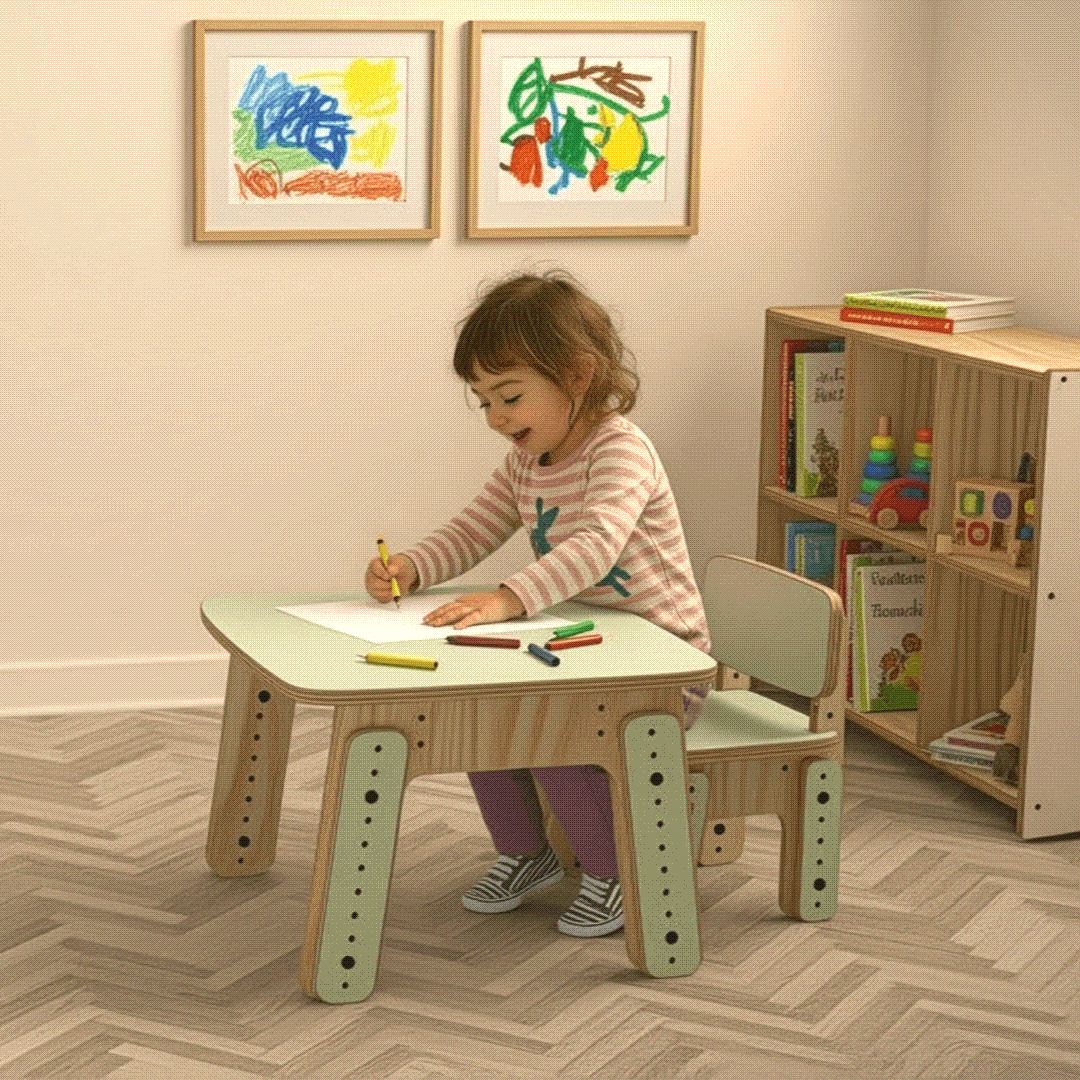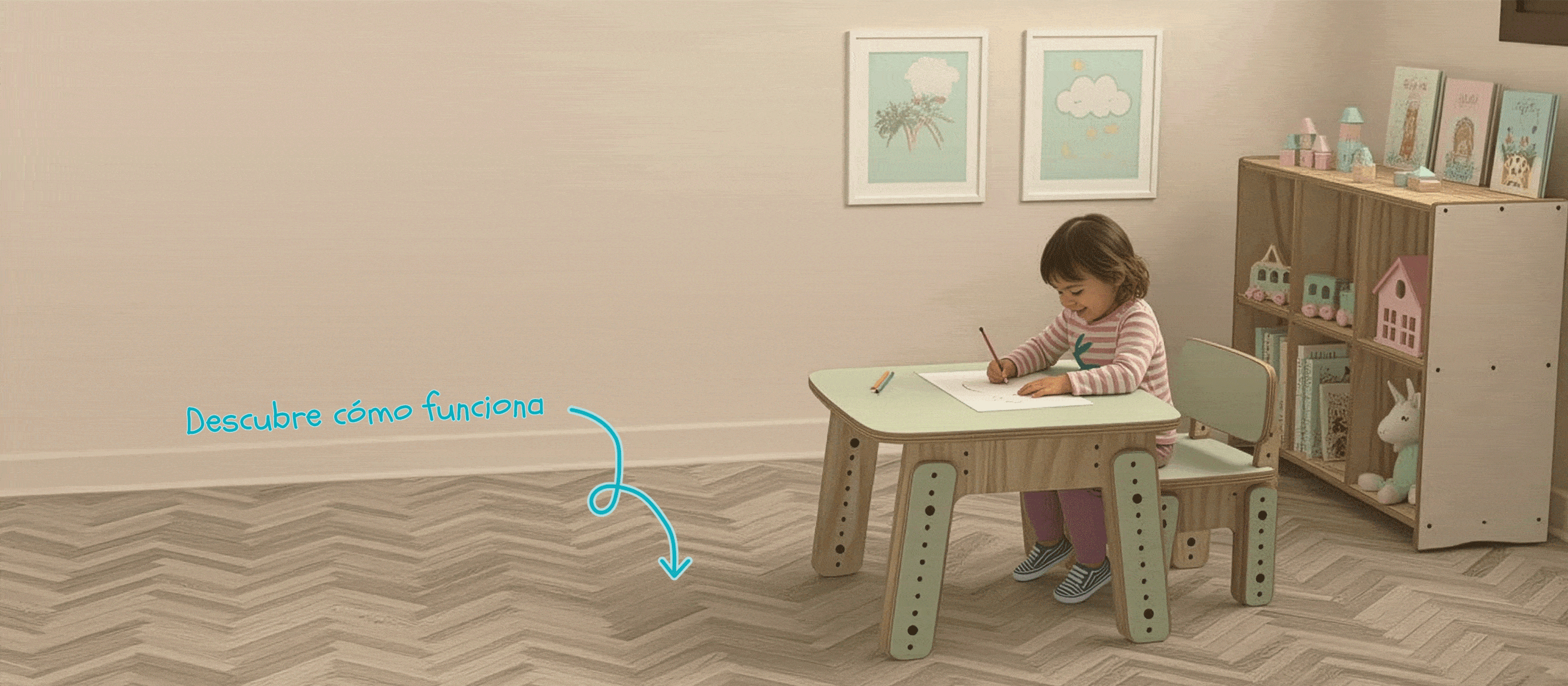 Ahora su mesa y silla también; un espacio que crece junto a su imaginación.